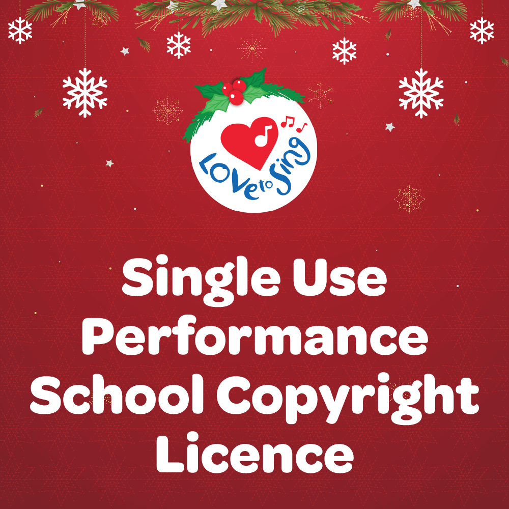 Protect your school. The Love to Sing Single Use Performance School Copyright Licence permits Schools to project or print out the words and music of one Love to Sing Christmas song for use in a single performance. You can project lyrics onto a big screen, print song lyric sheets or make OHP acetates. With this Licence, your School is also covered for recording services on behalf of those unable to attend in person. The Love to Sing Single Use Performance School Copyright Licence covers your school for a single use of a Love to Sing song for your Christmas concert! Licence fees are based on the total number of pupils on the school roll. All songs are additional to the cost of the licence.